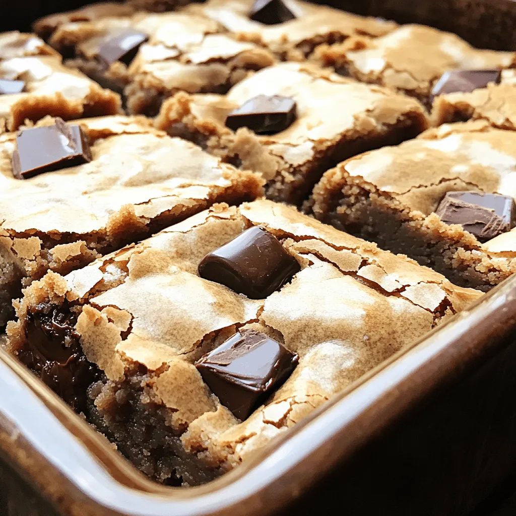 - 1 cup unsalted butter - 1 1/2 cups packed light or dark brown sugar - 2 large eggs, at room temperature - 2 teaspoons pure vanilla extract - 2 cups all-purpose flour - 1/2 teaspoon baking powder - 1/2 teaspoon fine sea salt - 1 cup chocolate chunks (dark or semi-sweet) - 1/2 cup chopped walnuts or pecans (optional) - Chopped walnuts or pecans add a nice crunch. You can leave them out if you want. - You can also try adding a pinch of cinnamon for a warm flavor. - If you don't have unsalted butter, you can use salted butter. Just skip adding extra salt. - Brown sugar can be replaced with white sugar, but the taste will change. - For a gluten-free option, use a gluten-free flour blend. - Eggs can be replaced with flax eggs for a vegan version. Use 1 tablespoon of ground flaxseed mixed with 2.5 tablespoons of water for each egg. Start with a medium saucepan. Place 1 cup of unsalted butter in it. Heat it over medium heat. As the butter melts, stir constantly. Watch for the butter to foam. This shows that it is cooking properly. After a few minutes, the butter will change color. You want a deep golden brown. This process takes about 5-7 minutes. You will smell a nutty aroma, which means you are close. Once done, remove the pan from the heat. Let the butter cool for about 5 minutes. This cooling time is important for the next steps. In a large mixing bowl, pour in the warm brown butter. Add 1 1/2 cups of packed brown sugar to the bowl. Whisk them together until smooth. The mixture should feel creamy and cohesive. Now, crack 2 large eggs into the bowl. Add them one at a time. Whisk vigorously after each egg. This helps to incorporate air into the mixture. Finally, stir in 2 teaspoons of pure vanilla extract. This will add a lovely depth of flavor to your blondies. In a separate bowl, mix your dry ingredients. Whisk together 2 cups of all-purpose flour, 1/2 teaspoon of baking powder, and 1/2 teaspoon of fine sea salt. Make sure they are well blended. Slowly add this dry mixture to your wet ingredients. Use a spatula to fold them together gently. Be careful not to overmix. You want a light, fluffy batter. If you are using nuts, now is the time to add 1/2 cup of chopped walnuts or pecans. Finally, fold in 1 cup of chocolate chunks. This makes for a delightful texture in every bite. To make the best blondies, start with brown butter. It adds a rich flavor. Heat the butter slowly until it turns golden brown. This step is key to depth in taste. Use room temperature eggs to ensure a smooth batter. They mix in better and help your blondies rise nicely. Overmixing is a common issue. When you combine the dry and wet mixes, stop as soon as they blend. This keeps your blondies soft and chewy. Also, don’t skip the cooling step after baking. If you cut them too soon, they will fall apart. Patience is your friend! Every oven is different. Start checking your blondies at 25 minutes. You want golden edges and a few moist crumbs on a toothpick. If they look too wet, give them a few more minutes. Just be careful not to overbake, or they will dry out. {{image_4}} You can change the taste of your blondies easily. Try adding spices like cinnamon or nutmeg. They add warmth and depth. Want a fruity twist? Toss in some dried cranberries or cherries. For a fun crunch, mix in crushed pretzels or potato chips. These add a salty-sweet contrast that is hard to beat. If you love peanut butter, swirl in some creamy peanut butter before baking. Each of these options brings unique flavors that make your blondies one of a kind. If you need a gluten-free option, use a gluten-free flour blend. This swap keeps the blondies soft and chewy. For a dairy-free treat, replace the butter with coconut oil or vegan butter. You can also use flax eggs instead of regular eggs for a vegan version. Just mix 1 tablespoon of ground flaxseed with 2.5 tablespoons of water. Let it sit for a few minutes until it thickens. This simple change makes the recipe friendly for everyone. Serve your blondies warm for the best taste. Dust them with powdered sugar for a pretty touch. Pair them with vanilla ice cream for a classic dessert. A drizzle of caramel or chocolate sauce makes them even more special. For a fun twist, serve them with fresh fruit, like berries or banana slices. This adds a fresh, light contrast. You can also enjoy blondies with a cup of coffee or tea for a cozy snack. To keep your brown butter chocolate chunk blondies fresh, store them in an airtight container. This will help maintain their soft texture and rich flavor. Place a piece of parchment paper between layers if you stack them. Keep the container at room temperature for up to three days. If you want them to last longer, consider refrigerating them for up to a week. Just remember to let them come to room temperature before enjoying. Freezing is a great option if you want to save some blondies for later. First, let them cool completely. Then, slice them into squares. Wrap each piece in plastic wrap tightly. After wrapping, place the pieces in a freezer-safe bag or container. They can last in the freezer for up to three months. When you’re ready to eat them, simply thaw them in the fridge overnight or at room temperature for a few hours. To enjoy warm blondies again, preheat your oven to 350°F (175°C). Place the blondies on a baking sheet. Heat them for about 10 minutes. You can also use a microwave if you're in a hurry. Heat one blondie for about 15-20 seconds. This will make them warm and gooey again, just like fresh out of the oven! Yes, you can use salted butter. Just reduce the added salt in the recipe. Salted butter has flavor, but it may make the blondies taste saltier. Unsalted butter gives you more control over the taste. Blondies and brownies share a base but differ in flavor. Brownies have cocoa powder or melted chocolate for that rich chocolate taste. Blondies use brown sugar, giving them a sweet, caramel-like flavor without cocoa. The texture is similar, but blondie