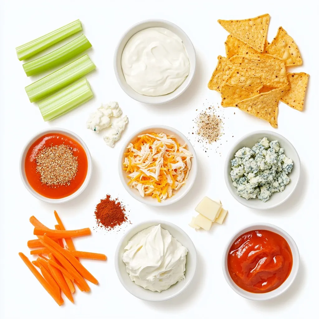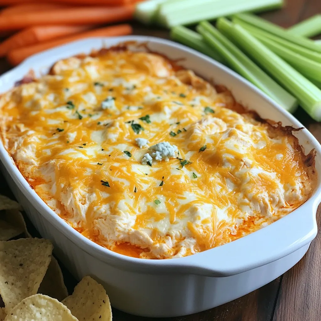 - 2 cups shredded cooked chicken - 1 (8 oz) package of cream cheese, softened - 1/2 cup sour cream - 1/2 cup mayonnaise - 1 cup Buffalo sauce - 1 cup shredded sharp cheddar cheese These ingredients form the base of your dip. The shredded chicken gives it texture and protein. Cream cheese, sour cream, and mayonnaise create a rich, creamy base. Buffalo sauce adds spice, and cheddar cheese brings in a sharp flavor. - 1/2 cup crumbled blue cheese - 1/2 teaspoon garlic powder - 1/4 teaspoon onion powder - Salt and pepper to taste You can add crumbled blue cheese for extra richness. Garlic and onion powders deepen the flavor. Salt and pepper balance all the tastes. Feel free to adjust these to match your taste. Each addition can change your dip's flavor, making it even more special. {{ingredient_image_2}} 1. Preheat your oven to 350°F (175°C). This step gets the oven hot for baking. 2. In a large bowl, add the softened cream cheese, sour cream, and mayonnaise. Mix until smooth. You can use a hand mixer or a spatula for this. 1. Once mixed, fold in the shredded chicken. Then, add the Buffalo sauce, garlic powder, and onion powder. Ensure everything is blended well. 2. Next, gently fold in the shredded cheddar cheese. If you like, add crumbled blue cheese as well. Season with salt and pepper to taste. 1. Grease an 8x8-inch baking dish with cooking spray or olive oil. This helps the dip not stick. 2. Pour your creamy chicken mixture into the dish, spreading it evenly. 3. Bake in the preheated oven for 20-25 minutes. Look for a hot, bubbly dip with a golden top. After baking, let it cool for a few minutes before serving. - Choosing the right chicken and cheeses: I love using rotisserie chicken. It saves time and adds flavor. For cheese, sharp cheddar shines in this dip. You can also add crumbled blue cheese for a richer taste. - Adjusting Buffalo sauce for heat preference: Buffalos are spicy! If you like it mild, use less sauce. Add a bit more if you crave heat. Always taste as you go. - Best dippers: tortilla chips, celery, and carrots: Tortilla chips are my top choice. They add a nice crunch. Celery and carrots offer a fresh bite. Mix and match for fun! - Presentation tips for serving guests: Serve warm in the baking dish. Garnish with chopped green onions or parsley for color. Arrange dippers around the dip to make it inviting. Enjoy the savory goodness! Pro Tips Use Leftover Chicken: Utilizing rotisserie chicken not only saves time but also adds a depth of flavor to your dip. Adjust the Heat: Tailor the amount of Buffalo sauce to your liking; start with less and add more if you prefer extra spice. Cheese Variations: Experiment with different cheeses like Monterey Jack or Pepper Jack for a unique twist on flavor and heat. Serving Suggestions: Serve with a variety of dippers such as toasted baguette slices or crunchy crackers to enhance the experience. {{image_4}} If you love heat, try adding jalapeños or hotter sauces. Diced jalapeños add a fresh crunch and spice. You can also use a spicier Buffalo sauce for a real kick. Adjust the amount to suit your taste. Start with a small amount, then add more if you want it hotter. You can make this dip lighter by using light cream cheese and Greek yogurt. These swaps cut calories and add protein. For those on a low-carb diet, consider using shredded chicken without the sauce. You can mix in some spices instead for flavor. This way, you can enjoy a tasty dip without the carbs. Serving Buffalo chicken dip in a bread bowl is a fun twist. Just hollow out a round loaf of bread and fill it with the dip. It makes a great centerpiece! You can also create layered dip variations. Start with a layer of the Buffalo dip, then add layers of cheese, salsa, or guacamole. Each bite will be a surprise! To store leftover Buffalo chicken dip, let it cool first. Place it in an airtight container. Make sure the lid seals tightly. This keeps the dip fresh. You can store it in the fridge for up to four days. If you want to save it longer, freeze it. Use a freezer-safe container and label it. It can last up to three months in the freezer. To reheat the dip, I suggest using the oven or microwave. If using the oven, preheat it to 350°F (175°C). Transfer the dip to a baking dish. Heat for about 15-20 minutes, or until it's hot and bubbly. Stir halfway through to ensure even heating. In the microwave, place the dip in a microwave-safe bowl. Heat in 30-second increments, stirring in between. This keeps the dip creamy and tasty. You can make Buffalo chicken dip ahead of time. Prepare the dip completely but don’t bake it yet. Cover the dish tightly with plastic wrap. Store it in the fridge for up to 24 hours. When you are ready, just pop it in the oven. Bake as directed for a fresh, warm dip when your guests arrive. Can I make this dip in a slow cooker? Yes, you can! Just mix all the ingredients in the slow cooker. Cook on low for 2 to 3 hours. Stir occasionally until it’s hot and bubbly. This method is great for parties. How long does Buffalo chicken dip last in the fridge? Buffalo chicken dip lasts about 3 to 5 days in the fridge. Make sure to store it in an airtight container. If it looks or smells off, it’s best to throw it away. What can I use instead of mayonnaise? You can use Greek yogurt or avocado. Both options add creaminess without the extra calories. They also bring a nice twist to the flavor. Is there a non-dairy option for cream cheese? Yes! Look for vegan cream cheese made from nuts or tofu. These options work well in the dip and keep it creamy. How many people does this recipe serve? This recipe serves about 8 people. It’s perfect for game day or a small get-together. You can easily double it if you have more guests. Can this dip be scaled for larger gatherings? Absolutely! Just increase the ingredients. For a crowd, you might want to make two batches. This way, everyone can enjoy. Buffalo chicken dip is a tasty choice for any gathering. You learned about 