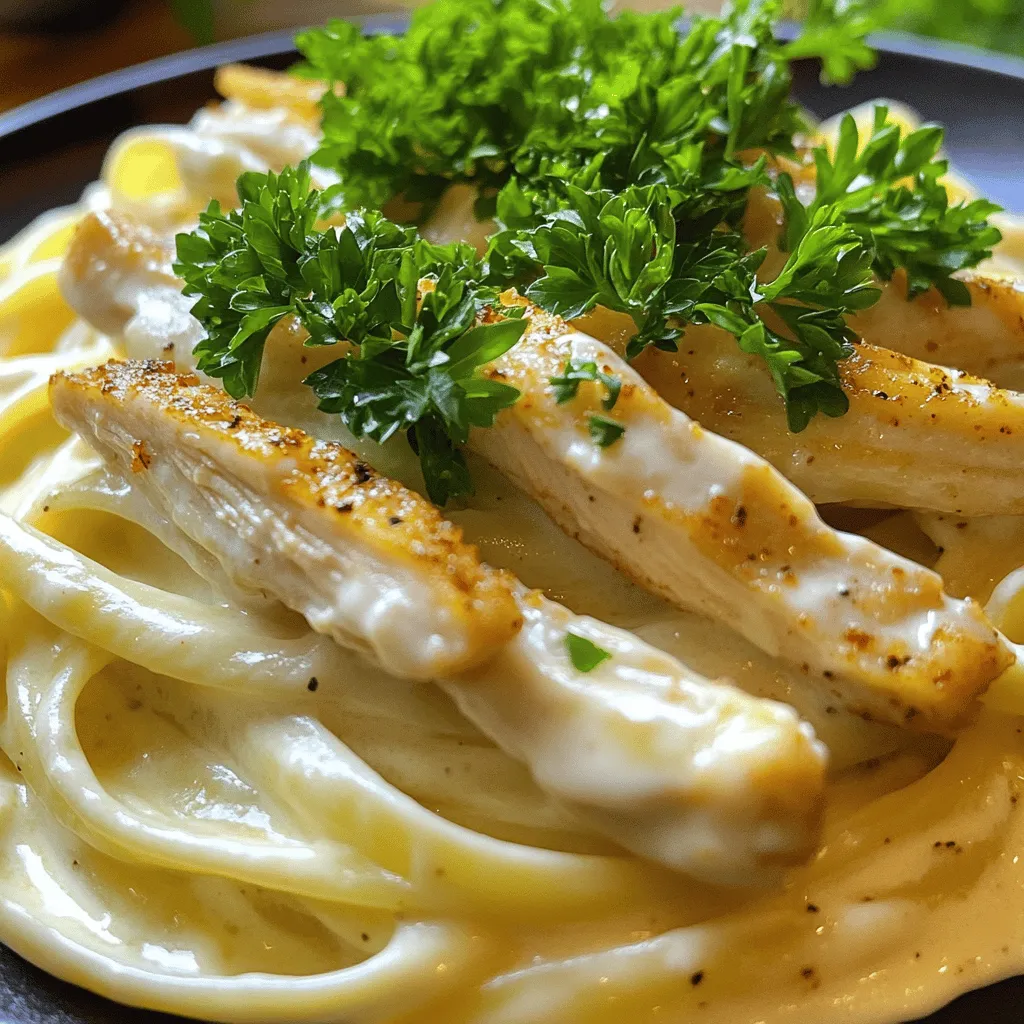 Presentation matters! To serve this dish, twirl the fettuccine into a nest shape. Place it in the center of each plate. Then, add the sliced chicken on top. For a pop of color, sprinkle fresh parsley on the dish. This not only looks good but adds a fresh taste. You can also serve it with a side salad for a complete meal.