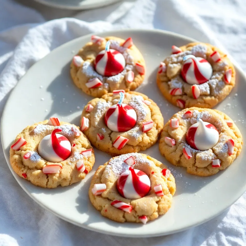As soon as the cookies come out of the oven, press a Candy Cane Kiss into the center of each cookie, allowing it to melt slightly and create a delightful swirl of chocolate.