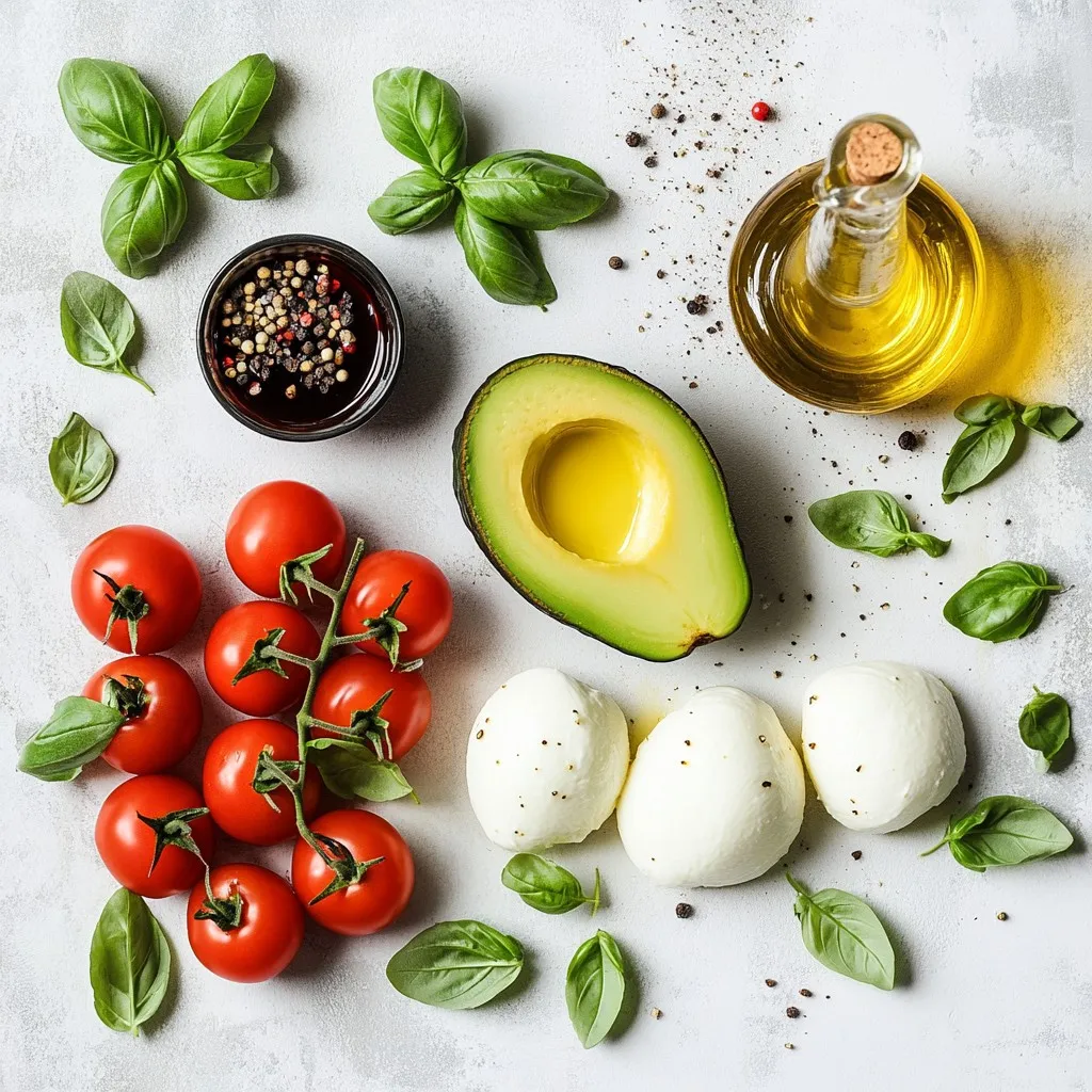 To make Caprese stuffed avocados, you need simple, fresh ingredients. Start with ripe avocados. They should feel soft but not mushy. Next, gather juicy cherry tomatoes. Halve them for easy mixing. Fresh mozzarella balls add creaminess. You can find these in the cheese section.