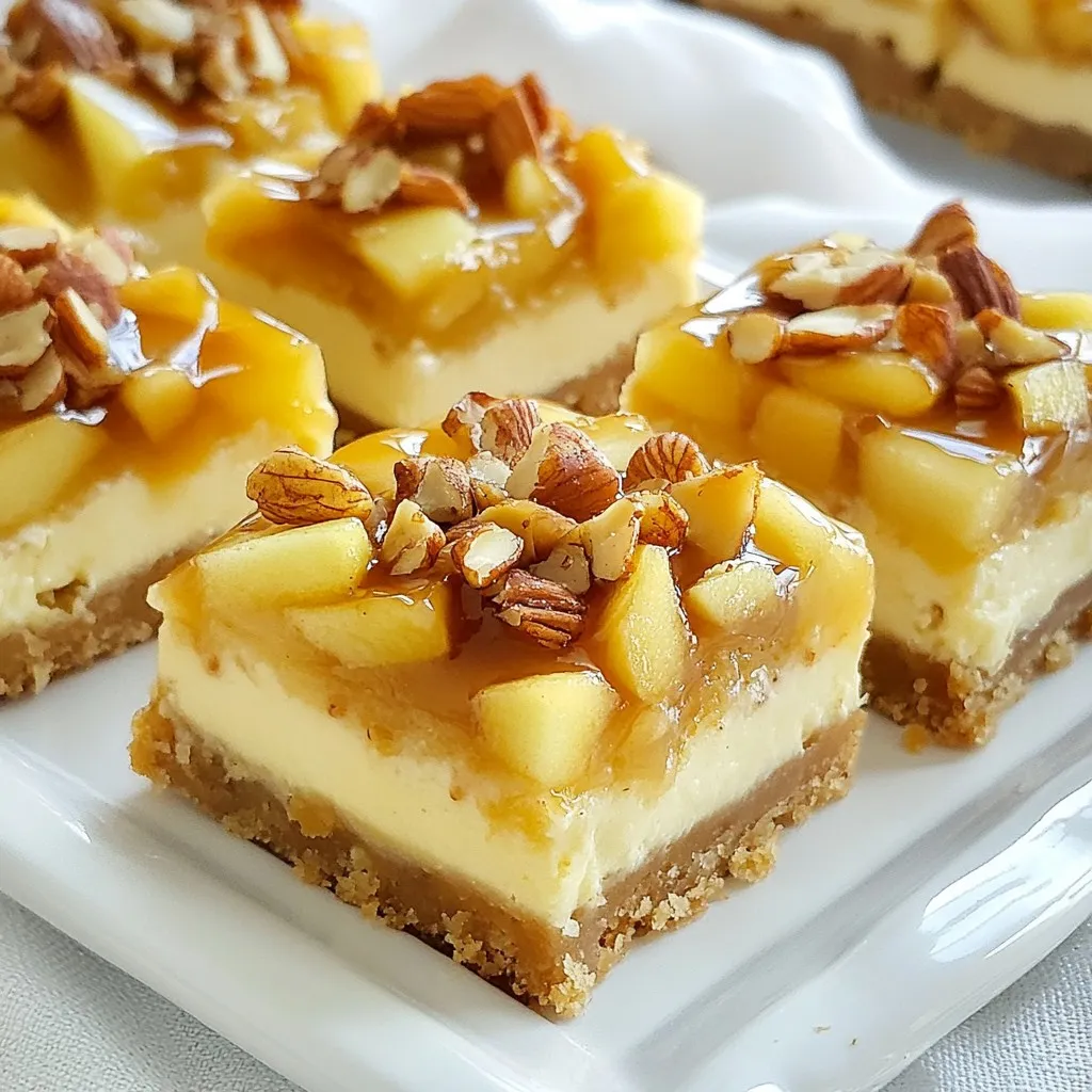 Delicious cheesecake bars with a caramel apple twist, perfect for dessert.
