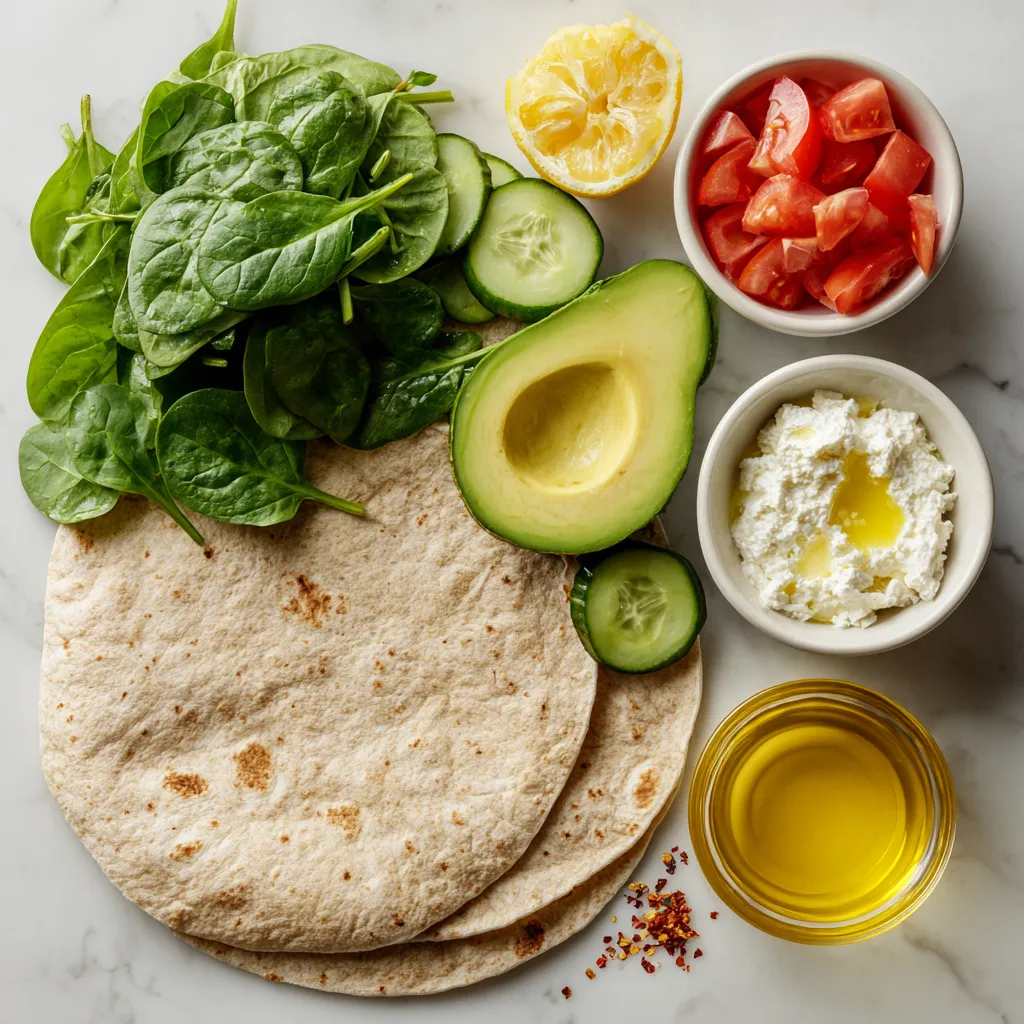 Each ingredient plays an important role. The whole wheat tortilla adds fiber. Cottage cheese gives creaminess and protein. Ripe avocado adds healthy fats and flavor. Fresh spinach leaves give crunch and nutrients. Cucumber adds a cool, refreshing taste. Tomato brings a juicy burst. Lemon juice adds brightness. Olive oil enhances the flavor. Seasoning rounds it all off.
