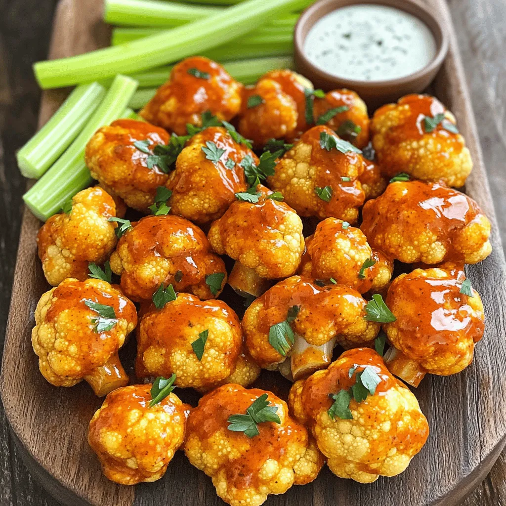 - 1 medium head of cauliflower, cut into bite-sized florets - 1 cup all-purpose flour (substitute with gluten-free flour if needed) - 1 cup milk (choose dairy or any plant-based alternative) - 1 cup breadcrumbs (use panko for an extra crunchy finish) - 1 teaspoon garlic powder - 1 teaspoon onion powder - 1 teaspoon smoked paprika - 1/2 teaspoon salt - 1/4 teaspoon black pepper - 1/2 cup buffalo sauce (or your preferred hot sauce) - 2 tablespoons olive oil - Fresh parsley, finely chopped (for garnish) To create crispy cauliflower wings, you need fresh cauliflower florets. I always recommend using a medium head of cauliflower. Make sure to cut it into bite-sized pieces. This helps them cook evenly. Next, prepare the wet mixture. Combine the flour and milk in a bowl. I like to add garlic powder, onion powder, smoked paprika, salt, and black pepper. This gives your wings a great flavor. Mix until smooth. For the crunch, use breadcrumbs. I suggest panko breadcrumbs for extra crispiness. These create a perfect outer layer. Don’t forget the buffalo sauce! It adds spice and tang. You can use your favorite brand or make your own. The olive oil helps the wings brown nicely. Finally, fresh parsley is a great garnish. It adds color and freshness to your dish. These ingredients come together for a flavorful delight that everyone will enjoy. Start by trimming the cauliflower. Cut it into bite-sized florets. This size helps them cook evenly and stay crispy. Once you cut the florets, place them in a large mixing bowl. This keeps your workspace tidy and organized. Next, make the batter. In a separate bowl, whisk together the flour and milk. You can use dairy or any plant-based milk you like. Then add garlic powder, onion powder, smoked paprika, salt, and black pepper. Mix until the batter is smooth. You want it to be slightly thick, so it clings well to the cauliflower. Now, it’s time to coat the cauliflower. Dip each floret into the batter. Make sure to cover every part so it gets a good flavor. Let any extra batter drip off. This step helps avoid sogginess. Then, take the breadcrumbs and place them in a shallow dish. Roll each battered floret in the breadcrumbs, ensuring they are fully covered. This gives a crunchy outer layer that makes each bite delicious. Before you cook, preheat your air fryer to 400°F (200°C). This takes about five minutes. It helps the wings get crispy. Lightly spray the air fryer basket with cooking spray to keep the wings from sticking. Arrange the coated cauliflower wings in a single layer. Avoid overcrowding, as this can lead to uneven cooking. If you have a lot, cook in batches. Lightly spray the tops of the florets with olive oil for extra crispness. Air fry the wings for about 12-15 minutes. Shake the basket halfway through cooking. This helps them brown evenly. You want them to turn golden and crispy. After air frying, it’s time for the sauce. In a large mixing bowl, add the air-fried cauliflower. Pour the buffalo sauce over them. Gently toss the wings until every piece is well-coated in sauce. For the final touch, return the coated wings to the air fryer. Cook them for an additional 2-3 minutes. This helps set the buffalo sauce and adds to the flavor. To make your cauliflower wings crispy, use panko breadcrumbs. They are coarser and give a great crunch. For the best texture, spray the florets with oil. This helps them crisp up nicely in the air fryer. Want more flavor? You can change the spices to suit your taste. Add more garlic powder for extra zing. You can also try different herbs. Fresh herbs like parsley or thyme boost flavor. If you love heat, mix in a bit of cayenne pepper or chili powder. You can even drizzle different sauces on top after cooking. Do not overcrowd the air fryer. If you stack the wings, they won’t cook evenly. It’s better to cook in small batches. This way, each floret gets enough hot air. Shake the basket halfway through cooking. This ensures they brown evenly on all sides. {{image_4}} You have many options for sauce. Buffalo sauce is a classic choice, but you can try other hot sauces too. Consider using a sweet chili sauce for a different kick. You can also swap it out for BBQ sauce. Teriyaki sauce adds a sweet and savory flavor. Mix things up to match your taste! If you need gluten-free wings, don’t worry! You can use gluten-free flour instead of all-purpose flour. Many brands make great gluten-free options. For the breadcrumbs, look for gluten-free panko. This will keep your wings crispy and delicious without any gluten. To make this recipe vegan, use plant-based milk. Almond milk or oat milk work great. You can also skip any animal products. Just make sure your breadcrumbs are vegan-friendly. This way, you can enjoy tasty wings that fit your diet! To keep your cauliflower wings fresh, store them in the fridge. Place them in a sealed container. Make sure it has an airtight seal. This helps prevent moisture. Enjoy the wings within three days for the best taste. If you want to store them longer, consider freezing. When reheating, use an air fryer. This keeps the wings crispy. Preheat your air fryer to 350°F (175°C). Heat the wings for about 5 to 7 minutes. Shake the basket halfway through. This ensures even heating. You can also use a microwave, but this may make them soft. If you use the microwave, heat in short bursts to avoid sogginess. You can freeze both cooked and uncooked wings. If freezing cooked wings, let them cool first. Place them in a freezer-safe bag. Remove as much air as possible. For uncooked wings, freeze them before frying. Lay them flat on a baking sheet until frozen. Then, transfer to a bag. To thaw, leave them in the fridge overnight. For quick thawing, use the microwave on low for a few minutes. To make your cauliflower wings extra crispy, focus on the batter and breadcrumb coating. - Use panko breadcrumbs for a crunchier texture. - Ensure the batter is thick enough to stick well. - Shake off excess batter