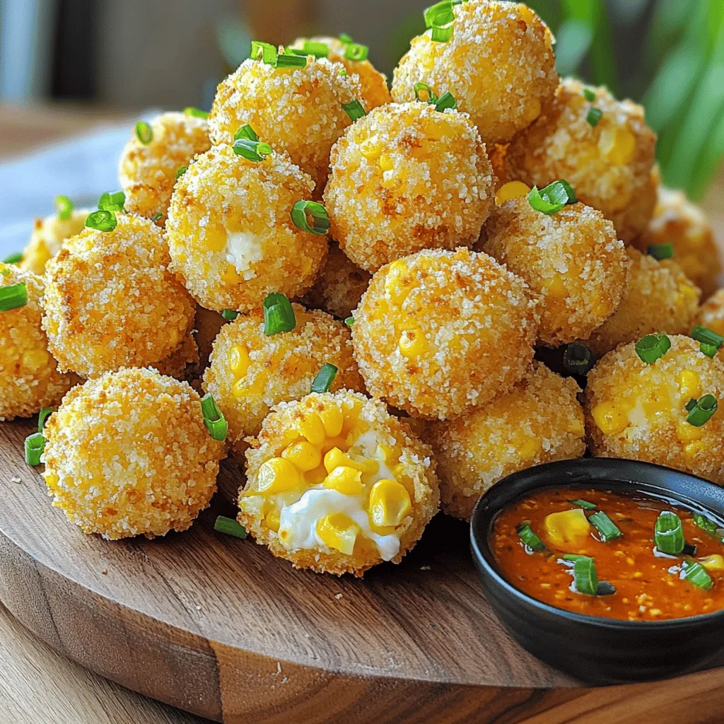 Pair your crispy corn cheese bites with delicious dips. Spicy marinara or garlic aioli works well. These dips add flavor and excitement. For presentation, use a colorful platter. Arrange the bites neatly and add a side of dip. Top them with chopped green onions for a nice touch. Serve them right away to keep them crispy.