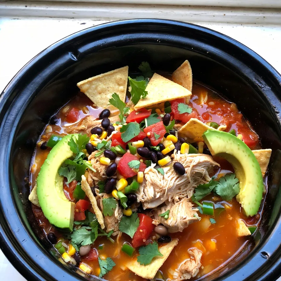 A flavorful and hearty chicken tortilla soup made in a crockpot, perfect for any occasion.