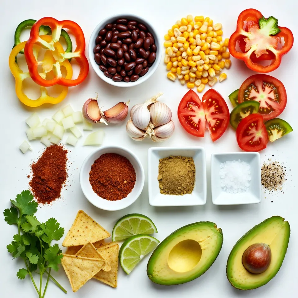 The main ingredients create a hearty base. The chicken adds protein and richness. Beans provide fiber, while corn gives sweetness. Diced tomatoes bring acidity and color. Onion and garlic add a strong flavor. The bell pepper adds crunch and freshness. Finally, chicken broth ties everything together.