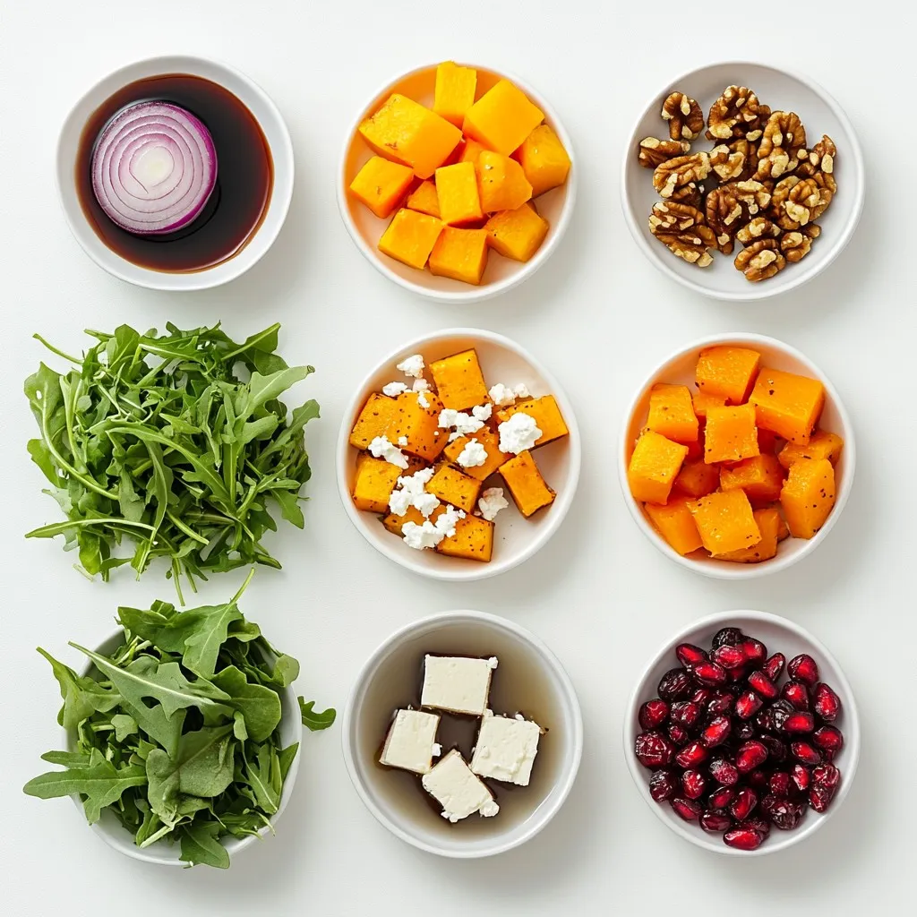 - 4 cups mixed greens (arugula, spinach, and kale) - 1 cup fresh pomegranate seeds - 1 cup roasted butternut squash, cubed - 1/2 cup feta cheese, crumbled - 1/3 cup walnuts, toasted and roughly chopped - 1/4 cup dried cranberries - 1/4 cup red onion, thinly sliced - 1/4 cup balsamic vinegar - 2 tablespoons olive oil - Salt and black pepper to taste Using fresh ingredients makes your salad bright and tasty. Fresh greens add crunch and color. Pomegranate seeds bring sweetness and a nice pop. Roasted butternut squash adds warmth and depth. Each ingredient enhances the dish, making it festive and inviting. This salad is not just delicious; it is also healthy. Mixed greens are low in calories and high in vitamins. Pomegranate seeds are rich in antioxidants. Butternut squash provides fiber and vitamins A and C. Feta cheese adds protein and calcium. Walnuts offer healthy fats. Together, these ingredients create a balanced dish that supports your well-being. {{ingredient_image_2}} To start, preheat your oven to 400°F (200°C). Next, take your cubed butternut squash and place it on a baking sheet. Drizzle some olive oil over the squash. Add a pinch of salt and black pepper. Spread the cubes out in a single layer. Roast them for about 25-30 minutes. You want the squash to be tender and caramelized. Once done, remove it from the oven and let it cool a bit. In a big salad bowl, add your mixed greens. I like to use a blend of arugula, spinach, and kale for color. Next, add the roasted butternut squash, fresh pomegranate seeds, and crumbled feta cheese. Toss in the toasted walnuts, dried cranberries, and sliced red onion. Gently mix all the ingredients to show off their festive colors and textures. In a small bowl, whisk together the balsamic vinegar and olive oil. Make sure they blend well to create a smooth dressing. Once mixed, drizzle the dressing over your salad. Toss the salad gently so every ingredient gets a tasty coating. Finally, taste your salad and add salt and pepper as needed for flavor. To make a great festive salad, start with fresh greens. Look for mixed greens like arugula, spinach, and kale. These greens offer color and flavor. Choose bright, crisp leaves without blemishes. Smell them; they should have a fresh scent. Avoid wilted or brown leaves. When you pick the greens, check the date on the package. Fresh greens make your salad taste better and look more vibrant. A beautiful salad impresses guests. Use a large, colorful bowl to showcase your salad. Arrange the greens as a base and layer your toppings on top. Add the roasted butternut squash, pomegranate seeds, and feta cheese in sections. This creates a stunning visual. For an extra touch, sprinkle more pomegranate seeds and feta on top. A sprig of fresh rosemary or thyme adds a festive feel. This not only looks great but also enhances the aroma. If you have leftover salad, store it in an airtight container. Keep it in the fridge for up to two days. To maintain freshness, store the dressing separately. When you’re ready to eat, add the dressing just before serving. This helps keep the greens crisp. If the salad looks a bit limp after storage, give it a quick toss. Add a splash of olive oil to revive it. Pro Tips Choose Fresh Ingredients: Always opt for the freshest mixed greens and seasonal produce to enhance the salad's flavor and nutritional value. Customize Your Nuts: Feel free to substitute walnuts with other nuts like pecans or almonds for a different texture and flavor profile. Make-Ahead Dressing: Prepare the balsamic dressing in advance and store it in the fridge. This allows the flavors to meld beautifully before use. Layer for Presentation: For an impressive presentation, layer the ingredients starting with the greens, followed by the squash, and top with pomegranate seeds and feta. {{image_4}} You can boost your Festive Christmas Salad with protein. Grilled chicken or turkey adds flavor and heartiness. For a plant-based option, try chickpeas or lentils. These will make the salad more filling and nutritious. Even shrimp or salmon can work well. Each choice offers a unique taste and texture. This salad is naturally gluten-free, thanks to its fresh ingredients. Ensure your feta cheese and balsamic vinegar are gluten-free. If you want to add croutons, use gluten-free bread. This keeps the salad safe for those with gluten sensitivities. Always check labels to be sure. Seasonal swaps can keep the salad fresh and exciting. In the winter, use roasted beets instead of butternut squash. In spring, swap in asparagus or snap peas. You can also change the greens! Try a mix of romaine or butter lettuce. Adjusting ingredients helps you enjoy new flavors all year long. To keep your festive Christmas salad fresh, store it in an airtight container. This helps lock in the flavors and keeps the greens crisp. It’s best to keep the dressing separate until you are ready to eat. This way, your salad stays crunchy and delicious. Mixed greens can last about 3 to 5 days in the fridge. Fresh pomegranate seeds are good for about a week if stored properly. Roasted butternut squash stays fresh for up to 4 days. Feta cheese can last for about a week after opening, while walnuts can stay good for several months if kept cool and dry. Dried cranberries can last for up to a year, making them a great pantry staple. If you have leftover butternut squash, reheat it in the oven or microwave. For the salad, gently toss it with fresh greens to refresh its look and taste. If the dressing has separated, just whisk it again before adding. This simple step brings back the flavor and makes your salad enjoyable again. Yes, you can make this salad ahead of time. I recommend preparing the roasted butternut squash and the dressing in advance. Store each in separate containers in the fridge. Combine everything just before serving. This keeps the greens fresh and crisp. If you can't find pomegranate seeds, you can use other fruits. Diced apples or pears add sweetnes