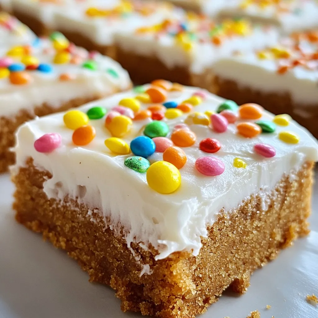 • Frost and Decorate: Once the bars are completely cool, spread the frosting evenly over the top using a spatula. For a festive touch, sprinkle colorful sprinkles or crushed candies on top of the frosting before it sets.