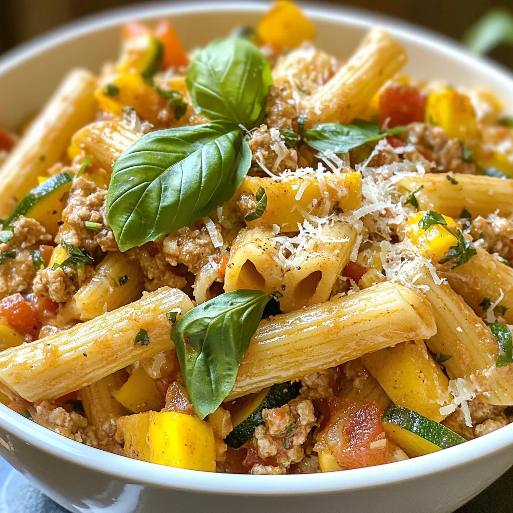 Serve: Plate the turkey pasta into bowls. Garnish with fresh basil leaves for a pop of color and a sprinkle of grated parmesan cheese for added richness, if desired. Enjoy your meal!