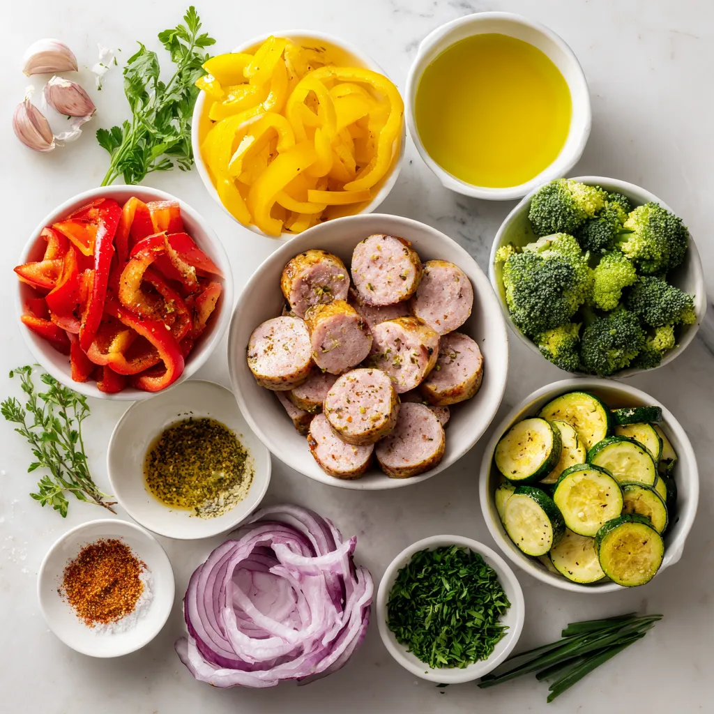 Gathering the right ingredients is key for a great dish. Choose lean turkey or chicken sausages for a healthier protein. Fresh vegetables add color and nutrients. Bell peppers, zucchini, and broccoli bring a nice mix of flavors and textures. Don’t forget the garlic and onion for depth.