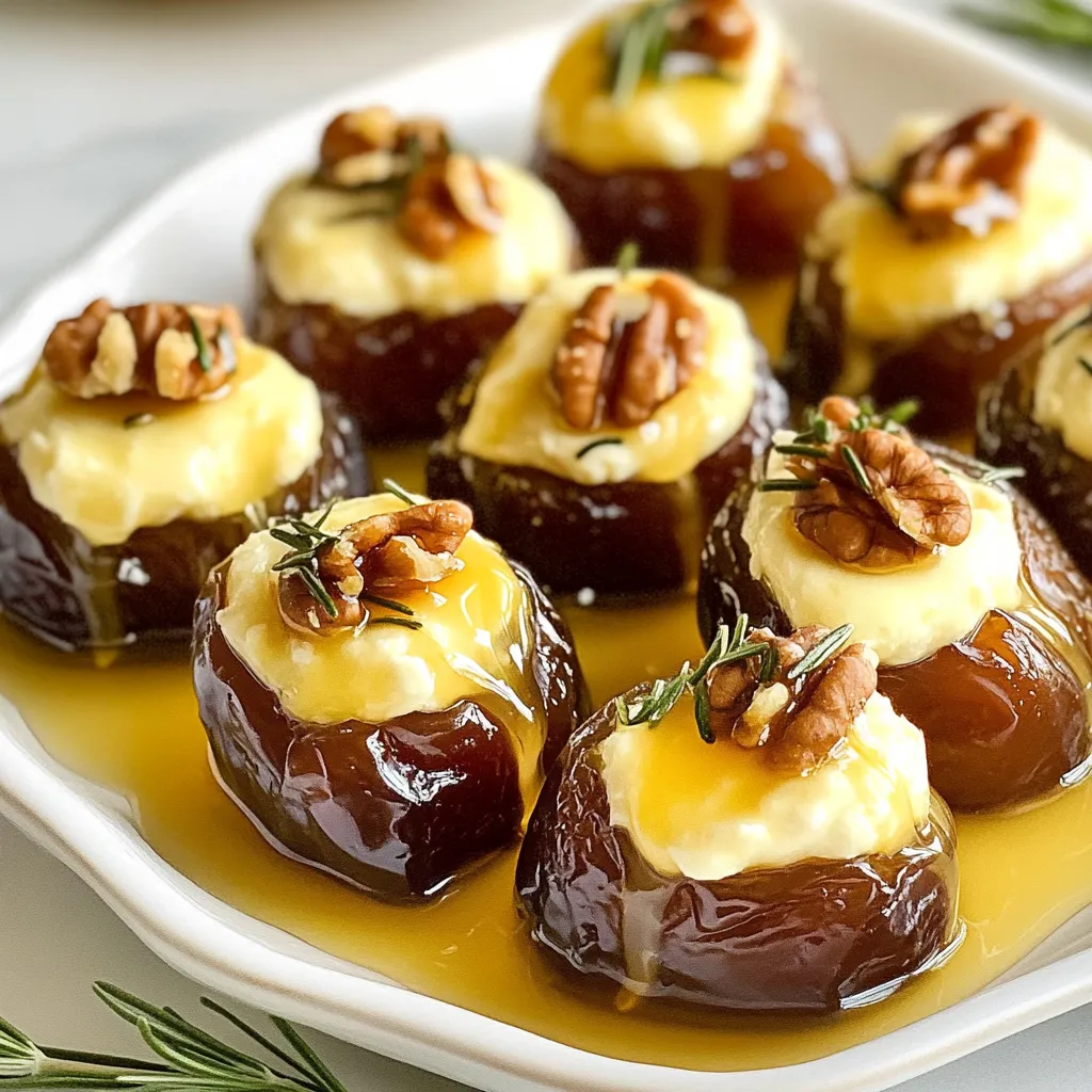 After baking, remove the tray from the oven and let the dates cool for a few minutes. This cooling time helps the flavors settle. To add a special touch, drizzle a bit more honey over the warm dates. Finally, garnish with fresh rosemary or thyme leaves. This not only looks beautiful but also adds a fragrant aroma. For an elegant display, consider arranging the dates on a serving platter with sprigs of fresh herbs or next to a small bowl of honey for dipping.
