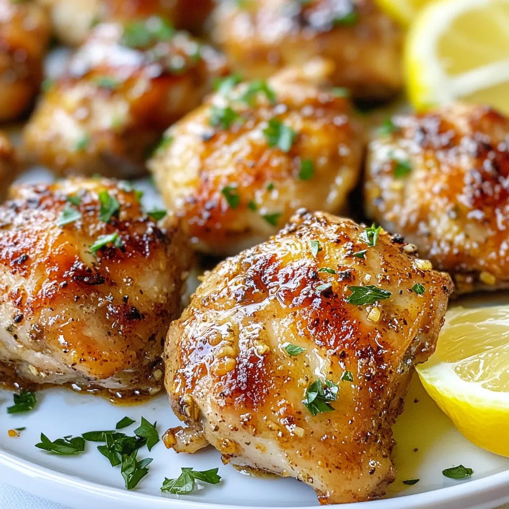 For an elegant touch, serve the chicken bites on a rustic wooden platter, garnished with some additional parsley and lemon slices for a pop of color.