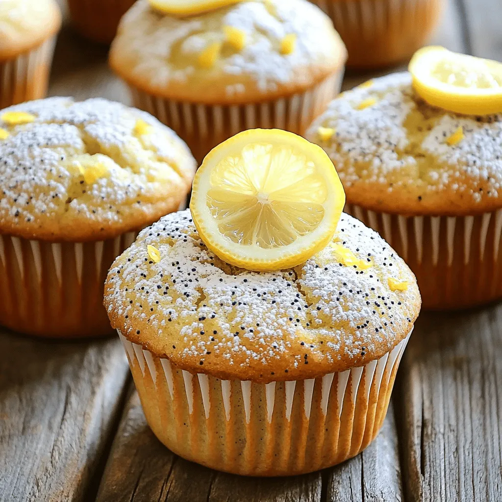 For Lemon Poppy Seed Muffins, gather these fresh ingredients: - 1 ½ cups all-purpose flour - 1 tablespoon poppy seeds - 1 teaspoon baking powder - ½ teaspoon baking soda - ½ teaspoon salt - ½ cup unsalted butter, softened to room temperature - 1 cup granulated sugar - 2 large eggs, at room temperature - Zest from 2 medium lemons - ¼ cup freshly squeezed lemon juice - ½ cup buttermilk, at room temperature - 1 teaspoon pure vanilla extract If you need alternatives, here are some great options: - Use whole wheat flour for a nutty flavor. - Swap poppy seeds for chia seeds if you prefer. - Greek yogurt can replace buttermilk for creaminess. - Any granulated sugar works, but coconut sugar adds a nice taste. Using fresh ingredients is key to great muffins. Fresh lemons give a bright, zesty flavor. Old flour can make muffins dense and dry. Butter should be at room temperature for easy mixing. Fresh eggs help the muffins rise well, creating a light texture. Always choose the best ingredients for delicious results. Start by preheating your oven to 350°F (175°C). This helps bake the muffins evenly. Next, prepare your muffin tin. You can line it with paper liners or spray it lightly with a non-stick cooking spray. This step keeps the muffins from sticking. Filling the tin with 12 cups is perfect for this recipe. In a medium bowl, sift together 1 ½ cups of flour, 1 tablespoon of poppy seeds, 1 teaspoon of baking powder, ½ teaspoon of baking soda, and ½ teaspoon of salt. This mixing ensures that the dry ingredients blend well. Set this bowl aside. In a large bowl, use an electric mixer to cream together ½ cup of softened butter and 1 cup of granulated sugar. Beat this mixture for about 3-4 minutes until it looks light and fluffy. Add 2 large eggs one at a time, mixing well after each. Then, mix in the zest from 2 lemons and 1 teaspoon of vanilla extract. Gradually add the flour mix and alternate it with ¼ cup of fresh lemon juice and ½ cup of buttermilk. Start and end with the flour mixture. Mix just until combined, avoiding overmixing to keep the muffins soft. Spoon the batter into the prepared muffin cups, filling them about two-thirds full. This gives the muffins room to rise. Bake in the preheated oven for 15-20 minutes. Use a toothpick to check if they are done. Insert it into the center of a muffin; it should come out clean. If it does, the muffins are ready. Let them cool in the tin for about 5 minutes before moving them to a wire rack. Enjoy the lovely aroma as they cool! To get the best texture in your muffins, use room-temperature ingredients. This helps them mix well. Cream the butter and sugar until light and fluffy. This step adds air, making the muffins rise. Be gentle when mixing the dry and wet ingredients. Overmixing can make them tough. One common mistake is not measuring flour correctly. Use a spoon to scoop it into a measuring cup, then level it off. Do not pack it down. Another mistake is skipping the zest. Lemon zest adds bright flavor. Also, avoid opening the oven door too early. This can cause the muffins to sink. You can boost the flavor of your muffins easily. Try adding blueberries for a fruity twist. You can also mix in some chopped nuts for crunch. For a unique taste, consider adding a splash of almond extract. Each of these additions can make your muffins even more delightful. {{image_4}} You can easily make gluten-free lemon poppy seed muffins. Replace all-purpose flour with a gluten-free blend. Look for one that includes xanthan gum. This helps the muffins rise and stay fluffy. Use the same amount of the gluten-free flour as the recipe calls for. This way, you keep the same texture and taste. You can mix it up with other flavors. Add blueberries for a fruity twist. Just fold in about one cup of fresh or frozen blueberries into the batter before baking. Another option is to make a lemon poppy seed loaf instead of muffins. Use a loaf pan and bake for about 50-60 minutes. The taste remains bright and fresh with each bite. Berries are a great way to change things up. Try adding raspberries or strawberries in the spring and summer. In fall, consider incorporating spices like cinnamon or nutmeg. A pinch can really warm the flavors. For winter, add a touch of orange zest for a festive flair. Each season brings new flavors and fun to your muffins! To keep your lemon poppy seed muffins fresh, store them in an airtight container. A good option is to use a zip-top bag or a plastic container with a lid. This method helps keep the muffins soft and moist. Place a paper towel in the container to absorb any excess moisture. This also helps prevent sogginess. If you want to save some muffins for later, freezing is a great choice. First, let the muffins cool completely. Wrap each muffin tightly in plastic wrap. Place the wrapped muffins in a freezer-safe bag or container. Label the bag with the date to keep track. When you are ready to enjoy a muffin, take it out of the freezer. You can thaw it overnight in the fridge. For a warm muffin, heat it in the microwave for about 20-30 seconds. Lemon poppy seed muffins stay fresh at room temperature for about 2-3 days. If you store them in the fridge, they can last up to a week. However, freezing them will give you the longest shelf life—up to three months. Always check for any signs of spoilage before eating. Enjoy these tasty treats while they are still fresh! Yes, you can make these muffins ahead of time. I often bake them the night before. Just cool them completely, then store them in an airtight container. They will stay fresh for a few days. If you want to keep them longer, you can freeze them. Wrap each muffin in plastic wrap and place them in a freezer bag. They will taste great even after a month. When ready to eat, just thaw and warm them up in the oven. The best way to serve lemon poppy seed muffins is warm. I suggest lightly dusting them with powdered sugar. You can also add a thin slice of lemon on top for flair. Thi