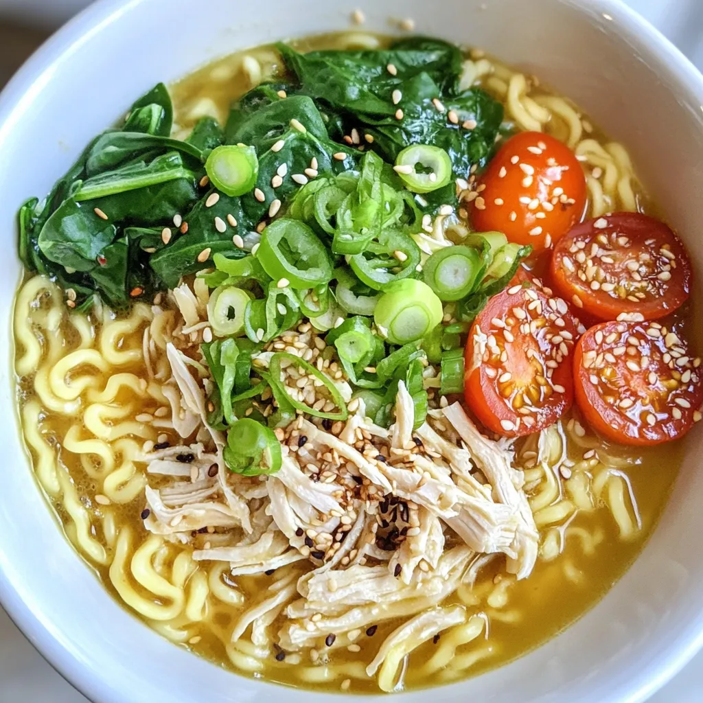 A creamy and flavorful ramen dish featuring tender chicken, fresh veggies, and a rich broth.