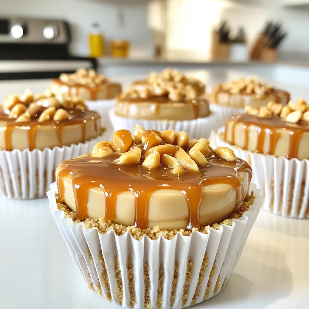 - 1 cup graham cracker crumbs - 1/4 cup unsalted butter, melted - 1/3 cup granulated sugar - 1/2 cup creamy peanut butter - 1 cup cream cheese, softened - 1 cup powdered sugar - 1 teaspoon vanilla extract - 1/2 cup whipped topping - 1/3 cup caramel sauce - Crushed peanuts for garnish - If you want to switch things up, try almond or cashew butter instead of peanut butter. They still give a nice flavor. - For a gluten-free crust, use gluten-free graham crackers or crushed nuts. - You can use dairy-free cream cheese and whipped topping for a dairy-free version. Just make sure they are suitable for your needs. These ingredients make the pie cups rich and creamy. The combination of peanut butter and caramel gives a sweet twist. Enjoy your baking adventure! To make the crust, start by combining the graham cracker crumbs, melted butter, and sugar in a large bowl. Mix well until the crumbs feel like wet sand. This ensures a good texture for the crust. Next, line a standard muffin tin with paper cupcake liners. Take the crust mixture and evenly distribute it into the bottom of each liner. Press down firmly to create a compact base. This step is key for a sturdy crust. Now, let’s move on to the filling. In a separate medium bowl, beat the softened cream cheese until it is smooth. I find using a hand mixer makes this easy. After it’s creamy, mix in the peanut butter, powdered sugar, and vanilla extract. Keep mixing until everything is well combined and fluffy. This is where the magic happens! Next, carefully fold in the whipped topping. This step gives the filling a light and airy texture. Then, spoon the peanut butter cream filling into the crusts. Smooth the tops with the back of a spoon. It should look inviting! Now, drizzle caramel sauce over each cup, allowing it to cascade down the sides. This adds a lovely touch. Finally, place the muffin tin in the refrigerator to set for at least 2 hours. Once they are firm to the touch, remove the muffin tin and peel off the cupcake liners. For a fun finish, sprinkle crushed peanuts over the top of each pie cup. This not only adds crunch but also makes them look amazing! To get the best texture for your peanut butter filling, use creamy peanut butter. It blends smoothly and helps create a light filling. Make sure your cream cheese is at room temperature. This step helps avoid lumps and keeps the filling fluffy. Chilling time is key. After you fill the cups, place them in the fridge for at least 2 hours. This allows the filling to firm up nicely. If you skip this step, your pie cups may fall apart when you serve them. For a stunning visual appeal, serve the pie cups on a decorative platter. Arrange them in a circle or a fun pattern. Drizzle extra caramel sauce around the base of the cups. This adds flair and entices your guests even more. Using garnishes effectively enhances the look. Sprinkle crushed peanuts on top of each pie cup. This adds a nice crunch and gives a rustic touch. You can also add a dollop of whipped topping on each cup for a creamy finish. {{image_4}} You can easily change this recipe to suit your taste. One fun way is by adding chocolate. You could mix in chocolate chips when you make the peanut butter filling. This gives the cups a rich and creamy taste. You can also drizzle some melted chocolate on top. It adds a nice touch and makes the cups even more tempting. Another idea is to use flavored toppings. Try adding crushed Oreos, sprinkles, or even fresh berries. Each topping gives a new taste and look. So feel free to get creative with what you have at home! If you want a vegan version, it is simple! Use coconut cream instead of cream cheese. Swap peanut butter with almond or cashew butter. You can also use maple syrup in place of granulated sugar. For the crust, try using crushed nuts or oats instead of graham crackers. For those watching their sugar intake, consider low-sugar alternatives. You can use a sugar substitute like stevia or erythritol. These options keep the pie cups sweet but lower in calories. Always check labels to ensure they fit your diet. Adjust the caramel sauce as well by choosing a low-sugar version. To keep your No-Bake Caramel Peanut Butter Pie Cups fresh, store them in the refrigerator. Place the pie cups in an airtight container. Make sure they are covered well. This helps them stay tasty for longer. You can also keep them in the muffin tin covered with plastic wrap. If you want to save them for later, freezing is a great option. Wrap each pie cup in plastic wrap, then place them in a freezer-safe bag. This will protect them from freezer burn. They can last up to three months in the freezer. When stored properly in the fridge, these pie cups last about five days. If you see any signs of spoilage, it’s best to throw them out. Look for changes in texture or an off smell. If the graham crust becomes soggy or the filling separates, those are signs they are past their prime. Always trust your senses when deciding if food is still good! Yes, you can make these pie cups ahead of time. They store well in the fridge. I suggest making them a day before your event. After they set, cover the muffin tin with plastic wrap. This keeps them fresh. You can also place them in an airtight container. They will last up to three days in the fridge. If you want a substitute for whipped topping, try freshly whipped cream. You can whip heavy cream until it’s fluffy. Another option is Greek yogurt for a tangy twist. Just keep in mind that this will change the taste slightly. For a dairy-free option, use coconut whipped cream. Each option gives a nice texture. To enhance the caramel taste, drizzle more caramel sauce on top. You can also mix a bit of caramel sauce into the filling. Adding a pinch of sea salt can boost the flavor too. If you love caramel, consider using caramel-flavored cream cheese. It brings a richer taste and makes it more decadent. You learned how to make tasty peanut butter pie cups with easy steps and tips.