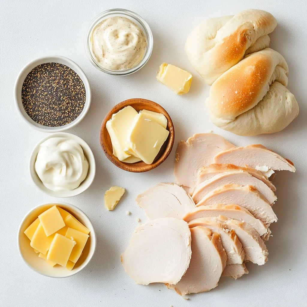 Gathering the right ingredients sets the stage for great flavor. You will start with slider-size dinner rolls, perfect for a party. Choose thinly sliced deli turkey or chicken to keep things easy. Swiss cheese adds a creamy taste that pairs well with the meat.