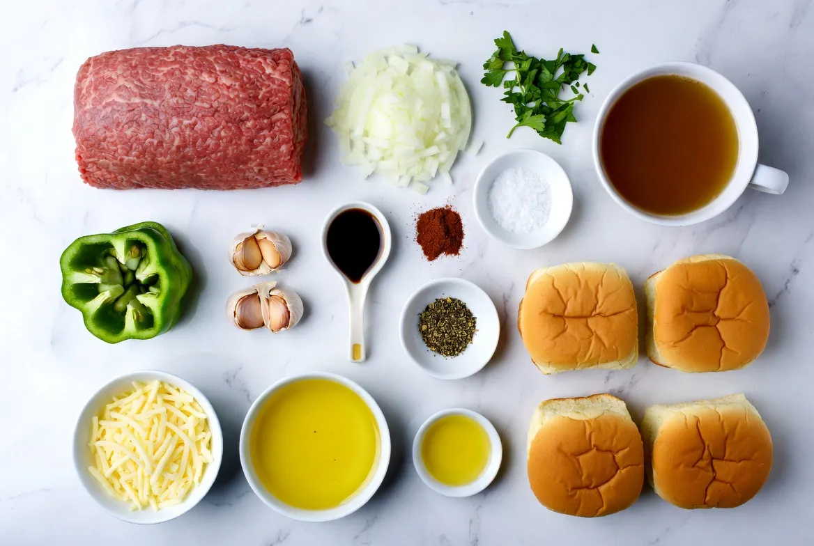 Gathering these ingredients makes cooking easy and fun. Ground beef is the star here, offering rich flavor. The diced onion and green bell pepper bring sweetness and crunch. Provolone cheese melts beautifully, adding creaminess.