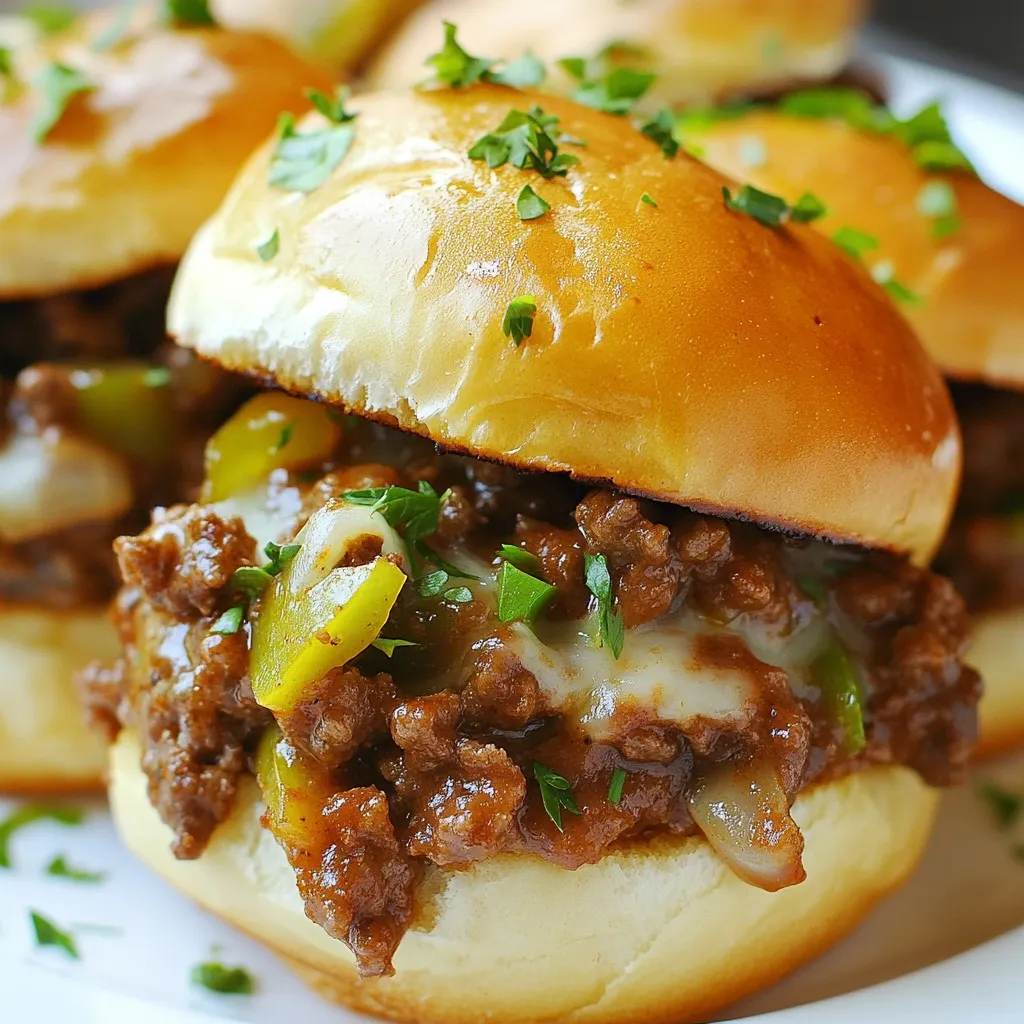 Finally, garnish and serve. Place the tops of the buns on each sloppy joe. If you like, sprinkle some chopped fresh parsley on top for color. Enjoy your tasty Philly cheesesteak sloppy joes!