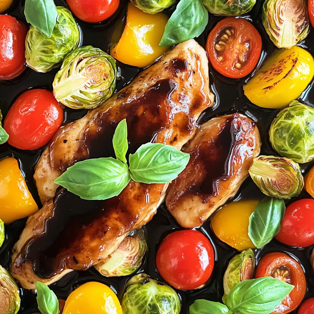 The chicken breasts are the star of this dish. They soak up all the flavor from the marinade. The Brussels sprouts add a nice crunch. The bell peppers bring sweetness and color. The red onion adds a sharp bite. Cherry tomatoes burst with juiciness when roasted.