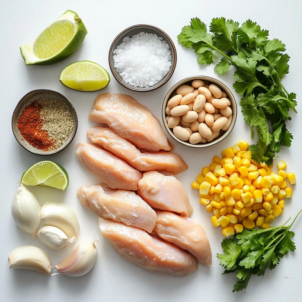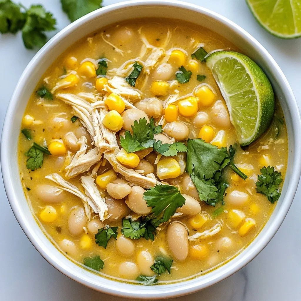For my Slow Cooker White Chicken Chili, you'll need: - 2 boneless, skinless chicken breasts - 1 can (15 oz) white beans (cannellini or great northern work best) - 1 can (4 oz) diced green chilies - 1 medium onion, finely diced - 3 cloves garlic, minced - 2 cups low-sodium chicken broth - 1 teaspoon ground cumin - 1 teaspoon smoked paprika - ½ teaspoon chili powder - 1 teaspoon salt (adjust to personal preference) - ½ teaspoon freshly cracked black pepper - 1 cup frozen sweet corn - 1 cup heavy cream or coconut cream (for a dairy-free alternative) - Fresh cilantro, for garnish - Lime wedges, for serving These ingredients come together to create a rich and smooth chili. Each one plays a vital role in the flavor profile. When shopping for ingredients, I recommend a few trusted brands: - Chicken Broth: Swanson’s or College Inn are great choices. - Canned Beans: Eden Organic or Goya offer high-quality options. - Canned Green Chilies: Hatch is my go-to for a good kick. - Spices: McCormick or Simply Organic have fresh options. Using good brands makes a difference in taste and quality. Always check the labels for added ingredients or preservatives. If you want to customize the chili, here are some easy swaps: - Chicken: Use turkey or shredded rotisserie chicken instead. - Beans: Black beans or pinto beans can work too. - Cream: For a lighter option, try Greek yogurt or sour cream. - Corn: Fresh corn can replace frozen if you have it on hand. - Spices: Adjust the chili powder for more heat or use taco seasoning for a twist. These substitutions keep the essence of the dish while allowing for flexibility based on your pantry. Enjoy experimenting! {{ingredient_image_2}} To start, place your two boneless, skinless chicken breasts at the bottom of the slow cooker. Make sure they lie flat for even cooking. Next, take a can of white beans and drain it. Rinse the beans under cold water, then add them to the slow cooker. Open the can of diced green chilies and pour them in too. This adds a lovely kick to the chili. Now, it’s time to add the onion and garlic. Finely dice one medium onion and mince three cloves of garlic. Layer these on top of your chicken and beans. They will give great flavor as they cook. Carefully pour in two cups of low-sodium chicken broth. This keeps your chili moist and tasty. Next, you will sprinkle in the spices: one teaspoon of ground cumin, one teaspoon of smoked paprika, and half a teaspoon of chili powder. Don’t forget to add one teaspoon of salt and half a teaspoon of black pepper. Use a spoon to gently stir everything together. Cover the slow cooker with its lid. Set it to low for six to eight hours or high for three to four hours. The chicken should cook until it’s tender and easy to shred. When the cooking time is up, carefully take the chicken out. Use two forks to shred the chicken. Then, return the shredded chicken back into the pot. Next, add one cup of frozen sweet corn. Pour in one cup of heavy cream or coconut cream for a dairy-free option. Stir everything together. Cover the slow cooker again and cook on low for an extra 30 minutes. This step lets all the flavors blend beautifully. Before you serve, taste the chili. Adjust the seasoning if needed. To serve, ladle the chili into warm bowls. Garnish with fresh cilantro on top. Add a lime wedge on the side for a zesty touch. If you like heat, offer sliced jalapeños for an extra kick! Enjoy your comforting meal. To make your slow cooker white chicken chili truly shine, focus on the spices. Ground cumin and smoked paprika are key. They add warmth and depth. You can also try adding a little lime juice just before serving. It brightens the flavors. Fresh cilantro on top will give a nice touch too. If you like heat, add jalapeños or a dash of hot sauce. One common mistake is not seasoning enough. Taste your chili before serving. Adjust with salt and pepper if needed. Another mistake is overcooking the chicken. You want it tender, not dry. Make sure to remove it when it shreds easily. Lastly, don’t skip the cream. It adds richness and smoothness to the chili. If your chili is too thin, don’t worry! You can thicken it easily. One way is to mash some of the white beans. This adds creaminess. You can also let it cook uncovered for the last 30 minutes. This helps reduce the liquid. If you want, add a cornstarch slurry. Mix 1 tablespoon of cornstarch with 2 tablespoons of cold water, then stir it in. Let it cook for a bit longer to thicken. Pro Tips Adjust the Spice Level: If you prefer a milder chili, reduce the amount of chili powder or omit it altogether. For extra heat, consider adding diced jalapeños or a dash of cayenne pepper. Use Leftover Chicken: This recipe is a great way to utilize leftover rotisserie chicken. Simply shred it and add it to the slow cooker in the last 30 minutes of cooking for a quick and easy meal. Make it Ahead: This chili can be made a day in advance and stored in the refrigerator. The flavors will deepen overnight, making it even more delicious when reheated. Garnish Creatively: Enhance the presentation by adding toppings such as diced avocado, shredded cheese, or a dollop of sour cream. Fresh cilantro and lime juice also brighten up the dish. {{image_4}} You can easily make this chili vegetarian or vegan. Start by skipping the chicken. Use two cans of white beans instead. They add protein and keep the texture nice. For a vegan option, swap heavy cream with coconut cream. This adds a sweet touch and keeps it creamy. You can also add more veggies, like bell peppers or zucchini. They bring color and flavor to the dish. If you want to switch up the protein, you have options. Ground turkey or beef can work well. Just brown the meat in a pan before adding it to the slow cooker. You can also try shredded pork for a different taste. Each choice gives you a unique flavor while keeping the dish hearty and satisfying. Adjust the spice to fit your taste. If you like it milder, just cut back o