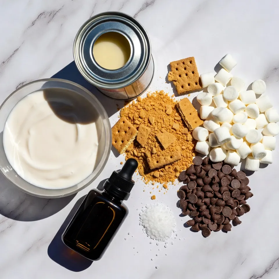 To make S’mores No-Churn Ice Cream, you need these key ingredients: