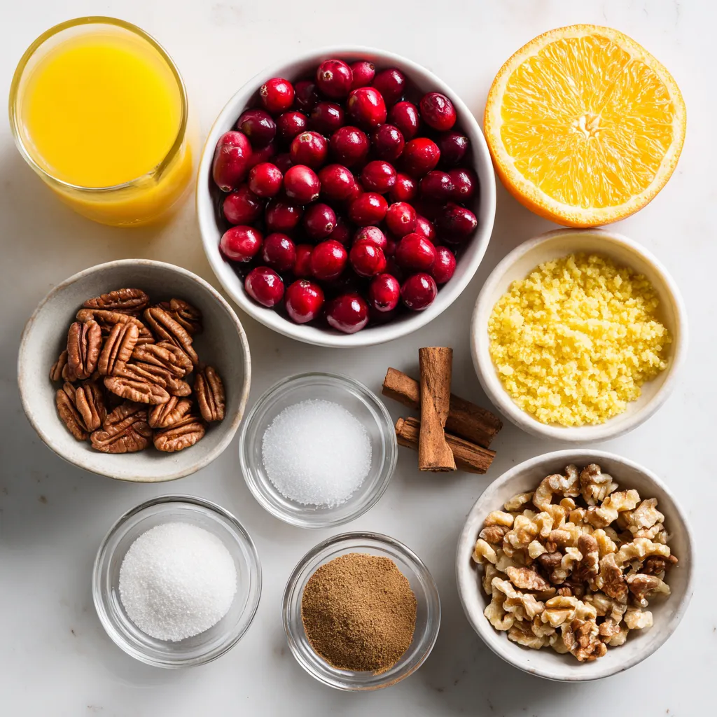 Gather these ingredients before you start. Fresh or frozen cranberries work well. The orange juice gives a bright taste. You can use store-bought juice if you like. Both sugars add sweetness and depth. The spices make this sauce warm and cozy. Use a fresh orange for zest to boost the flavor. If you want a crunch, add walnuts. They are optional but tasty. A pinch of salt balances the sweetness. With these items, you are ready to make a delicious spiced cranberry sauce!