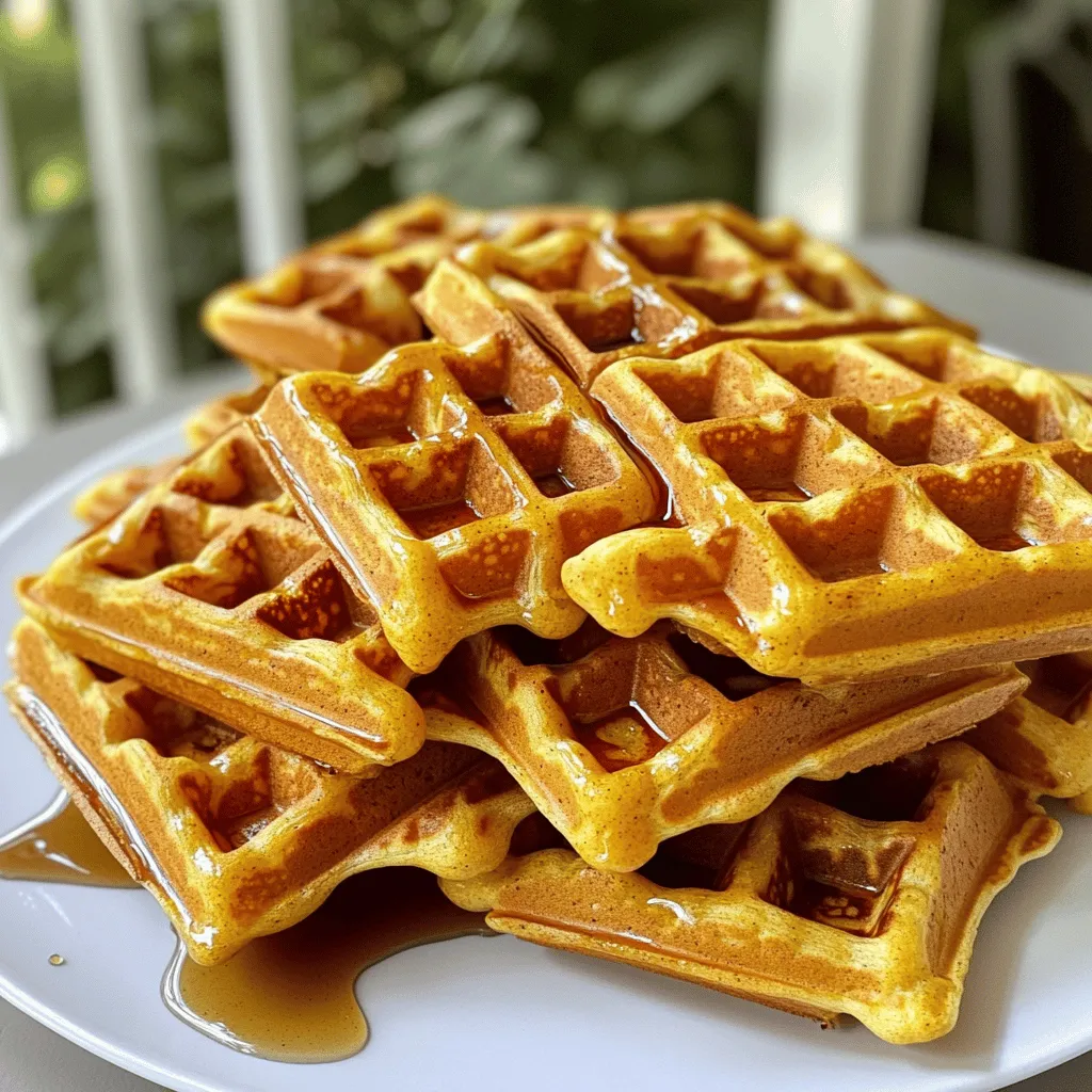 - 1 cup all-purpose flour - 1 cup canned pumpkin puree - 2 large eggs - 1/4 cup packed brown sugar - 1/2 cup milk - 1 tablespoon baking powder - 1/2 teaspoon baking soda - 1 teaspoon ground cinnamon - 1/2 teaspoon ground nutmeg - 1/2 teaspoon ground ginger - 1/4 teaspoon salt - 1/2 cup unsalted butter - 1/2 cup pure maple syrup For the best spiced pumpkin waffles, start with the right ingredients. First, grab a cup of all-purpose flour. This will give your waffles a nice base. Next, use a cup of canned pumpkin puree. It adds flavor and moisture. You need two large eggs for binding. A quarter cup of packed brown sugar sweetens the mix. Then, add half a cup of milk to make the batter smooth. Spices bring magic to these waffles. Use one tablespoon of baking powder to help them rise. Add half a teaspoon of baking soda for extra fluffiness. One teaspoon of ground cinnamon creates warmth. Half a teaspoon of ground nutmeg adds depth. Another half teaspoon of ginger gives a slight kick. Finally, use a quarter teaspoon of salt to balance the sweetness. For the brown butter maple syrup, melt half a cup of unsalted butter. This will turn nutty and rich. Stir in half a cup of pure maple syrup. This combo makes your waffles extra special. - Preheat the waffle maker according to the manufacturer's instructions. This step is key for even cooking. - In a large mixing bowl, combine: - 1 cup all-purpose flour - 1 tablespoon baking powder - 1/2 teaspoon baking soda - 1 teaspoon ground cinnamon - 1/2 teaspoon ground nutmeg - 1/2 teaspoon ground ginger - 1/4 teaspoon salt - Whisk these until well blended. This makes sure the spices are evenly spread. - In another bowl, whisk together: - 1 cup canned pumpkin puree - 2 large eggs - 1/4 cup packed brown sugar - 1/2 cup milk - 1/2 teaspoon vanilla extract - 1/4 cup unsalted butter, melted - Mix until smooth. This mixture gives the waffles their rich flavor. - Pour the wet mixture into the dry ingredients. - Stir gently until just combined. It's okay if some lumps remain. Overmixing makes the waffles tough. - Lightly grease your waffle maker. Use cooking spray or a bit of melted butter. - Cook the batter for 4-6 minutes, or until the waffles turn golden brown. Check your machine for specific times. - In a small saucepan over medium heat, melt: - 1/2 cup unsalted butter - Cook the butter until it turns golden brown and smells nutty. This takes about 5-7 minutes. Stay close to avoid burning. - Once ready, remove it from heat and stir in: - 1/2 cup pure maple syrup - Mix well and keep warm. This syrup adds a lovely touch to your waffles. To make your waffles light and fluffy, avoid overmixing the batter. When you combine the wet and dry ingredients, stir just until you see no dry flour. A few lumps are okay. Overmixing can lead to dense waffles, and we want them airy and soft. When making the brown butter for your syrup, keep a close eye on it. Melt the butter over medium heat and stir it often. Once it starts to foam, watch for that nutty aroma. It should turn a rich golden brown in about 5-7 minutes. If it burns, you’ll lose that lovely flavor. To make your waffles even more special, consider adding some toppings. A light dusting of powdered sugar gives a nice touch. A dollop of whipped cream adds creaminess. You can also sprinkle chopped nuts, like pecans or walnuts, for a delightful crunch. {{image_4}} If you need a gluten-free option, use a gluten-free flour blend. Many blends work well. Look for one that has a mix of flours like rice, almond, or coconut. The taste will still be great! For a vegan choice, swap regular eggs for flax eggs. To make a flax egg, mix 1 tablespoon of ground flaxseed with 2.5 tablespoons of water. Let it sit until it thickens. Use plant-based milk instead of dairy milk for the batter. Want to add more flavor? Try mixing in chocolate chips or chopped pecans into the batter. They add a nice crunch and sweetness. You can also sprinkle some on top for a beautiful finish. This makes the waffles even yummier! To keep your waffles fresh, place the cooked waffles in an airtight container. They will stay good in the fridge for up to 3 days. This way, you can enjoy them again without losing any flavor. If you have extra waffles, freezing them is a great option. First, cool the waffles completely. Then, lay them in a single layer on a baking sheet. Once they are frozen solid, transfer them to a freezer bag. They can last up to 2 months in the freezer. When you are ready to enjoy your waffles, reheating is simple. Use a toaster for a crisp finish or a microwave for a quick warm-up. Either way, you will have a tasty breakfast ready in no time! Yes, you can prepare the batter in advance and store it in the refrigerator for a few hours. This makes it easier for busy mornings. Just remember to stir it gently before using it. Ensure your waffle maker is preheated properly. You can also add a little more oil or butter to the batter. This helps create a nice, crunchy texture on the outside while keeping the inside fluffy. Besides brown butter maple syrup, try fresh fruits, nuts, or yogurt as delicious toppings. Sliced bananas or berries add a nice touch. A sprinkle of nuts gives extra crunch too. You can even add a dollop of whipped cream for a treat! These pumpkin waffles are easy to make and tasty. You mix simple ingredients like flour, pumpkin, and eggs. We covered tips for the perfect waffle texture and how to make brown butter maple syrup. You can even try gluten-free or vegan options. Store any extras for a quick meal later. With these ideas, enjoy a fun breakfast or snack. Now, grab your ingredients and start cooking!