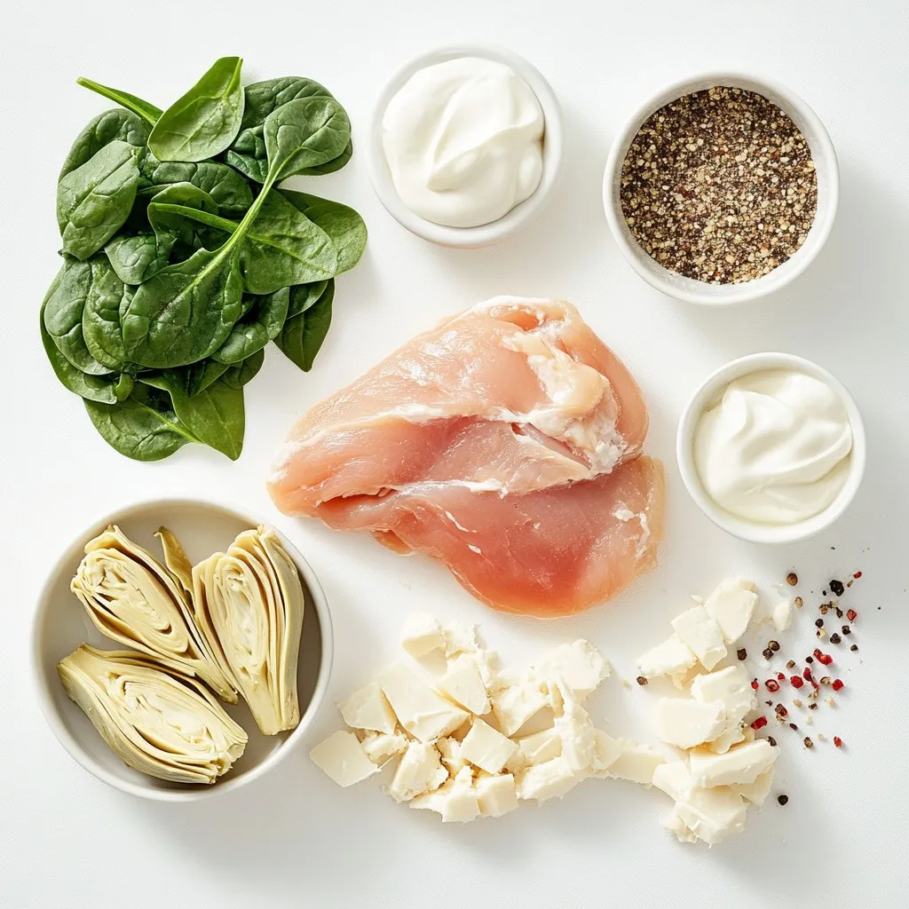 In this dish, chicken serves as the main protein. I love using fresh spinach for its bright color and nutrients. Artichoke hearts add a lovely texture and unique flavor. Cream cheese, sour cream, and mayonnaise create a rich, creamy base that binds everything together.