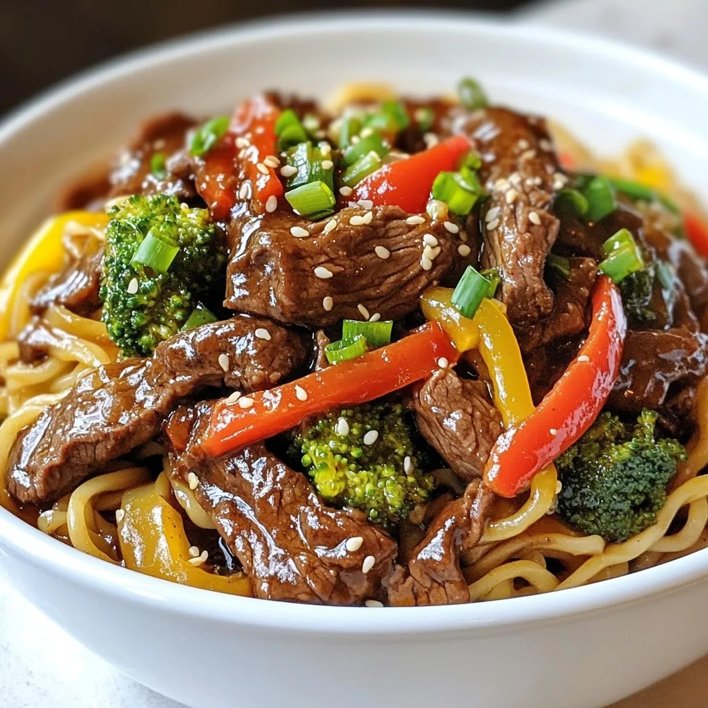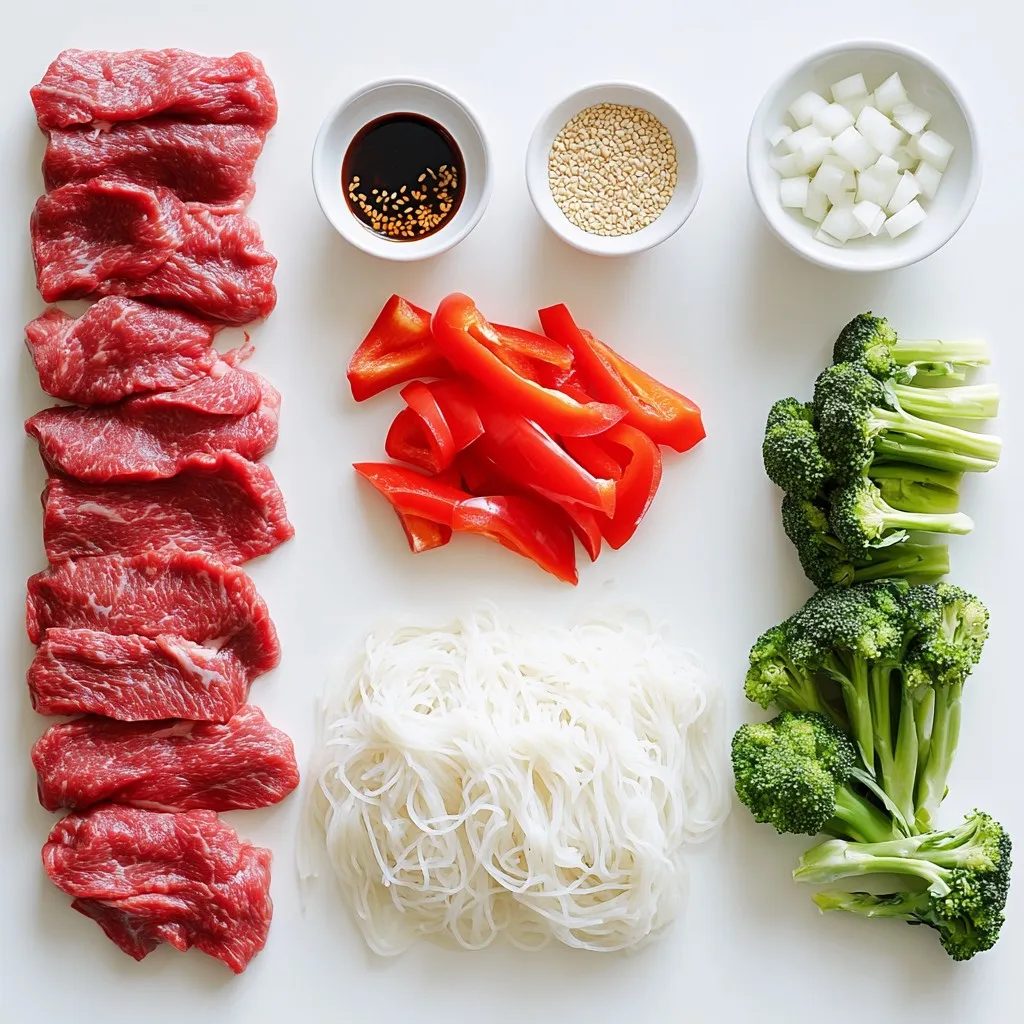 Garlic and ginger give bright, bold flavors. They enhance the beef and noodles. Veggies, like red bell pepper and broccoli, add color and nutrition. Sesame oil adds a nutty taste. Vegetable oil is great for stir-frying. Sugar helps balance the salty sauces. Lastly, scallions and sesame seeds make the dish pop. They add crunch and freshness.