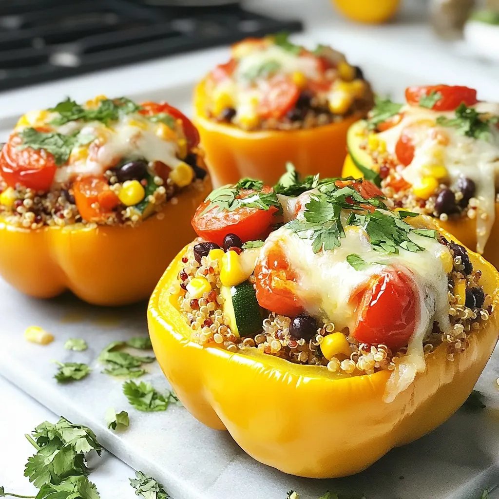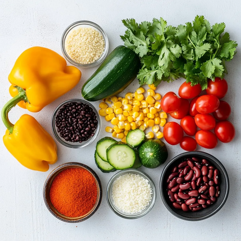 When I create veggie stuffed bell peppers, I focus on fresh, colorful ingredients. The bell peppers are the star of the dish. Choose ripe, firm ones in red, yellow, or green. They add a sweet crunch and vibrant color. Quinoa is my go-to grain here. It provides protein and texture. Rinse it well before cooking to remove any bitterness.